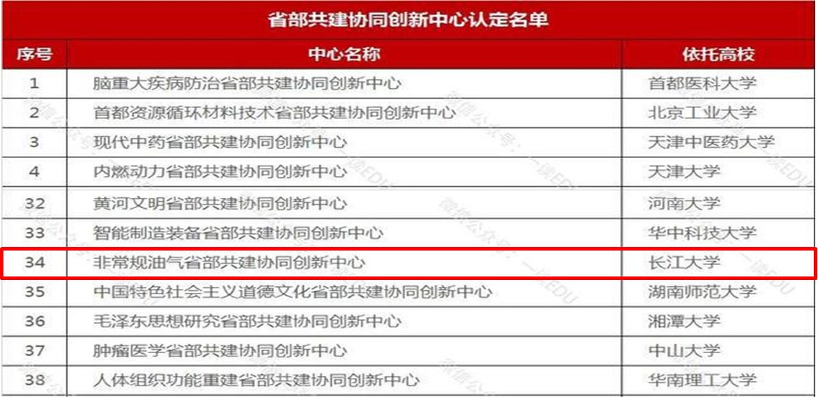太阳成集团122ccvip“非常规油气省部共建协同创新中心”,属于“2011协同创新计划”的一部分,是经湖北省教育厅、财政厅在2012年批准建设的省级协同创新中心,由太阳成集团122ccvip牵头、协同武汉大学、中国地质大学(武汉)、中石化江汉油田分公司等多家单位,围绕非常规油气共同建设。经过5年的建设,于2017年12月15日被湖北省教育厅验收评估为“优秀”等级,2018年12月4日被教育部认定为省部共建协同创新中心(全国仅59个,湖北省省属高校唯一、全国唯一非常规油气省部共建协同创新中心),目前建设成具有一定影响力和行业产业特色鲜明的协同创新中心。
