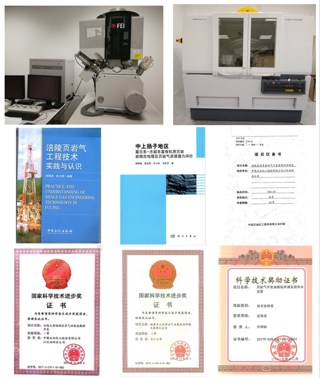 中心先后参与了涪陵国家级页岩气示范区建设、来凤湖北省页岩气勘查示范区建设。研究成果获国家科学技术进步奖一等奖和二等奖各1项;获省部级科学技术成果奖励25项,其中一等奖5项、二等奖13项;获专利授权135项,其中国际发明专利1项、国家发明专利 69 项;制定国家标准 2项 、行业标准1项;出版学术专著 16 部 发表相关学术论文 237 篇,其中被 SCI 、 EI 收录78篇。