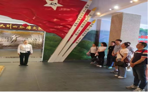 走进麻城革命老区,党员同志们缅怀革命先烈,接受了革命传统和爱国主义教育,在鄂豫皖发展史陈列馆大厅中,讲解员通过现场教学,详细介绍了黄麻起义、麻城惨案、革命火种进麻城等红色光辉事迹,党员们切身感受到了老一辈无产阶级革命家们崇高的理想信念及革命先烈无所畏惧、奋勇抗敌的革命精神,激发了大家强烈的爱国热情。