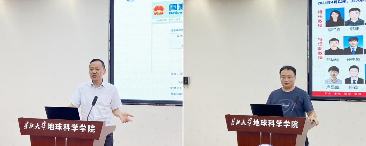 副经理胡忠贵对本科教学、科研工作、实验室管理及平台建设2025年上半年取得的成效进行了总结和通报,对资源勘查工程专业认证复评申报工作,实践教学改革,实践课程教学大纲修订,智慧课程持续建设,科研团队建设,基金申报组织动员,油田企业走访,教学实验室建设,科研仪器管理等方面的工作做了详细的安排。