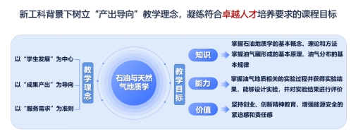 《石油与天然气地质学》是公司资源勘查工程、地质学和地球信息科学与技术专业的核心理论课程,课程定位于夯实专业理论基础、获得工程实践训练、培育科研创新意识、构建行业价值理念。