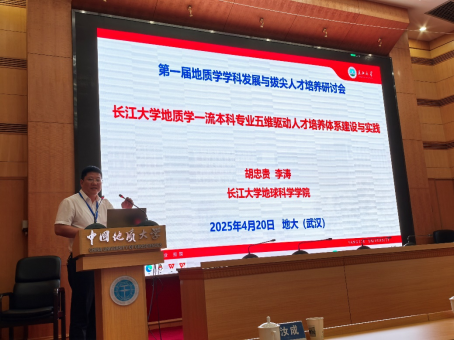 2025年4月20日,中国地质大学(武汉)举办的“第一届地质学学科发展与拔尖人才培养研讨会”在武汉召开。中国科学技术大学郑永飞院士、中国地质大学(北京)王成善院士、浙江大学杨树锋院士、长安大学彭建兵院士、西北大学赵国春院士、中国地质大学(武汉)谢树成院士、地质学类专业指导委员会和来自全国30余所高校89位专家学者参加了本次会议。公司副经理胡忠贵、地质系主任李涛参加了此次会议,胡忠贵副经理做了“太阳成集团122ccvip地质学一流本科专业五维驱动人才培养体系建设与实践”的报告。