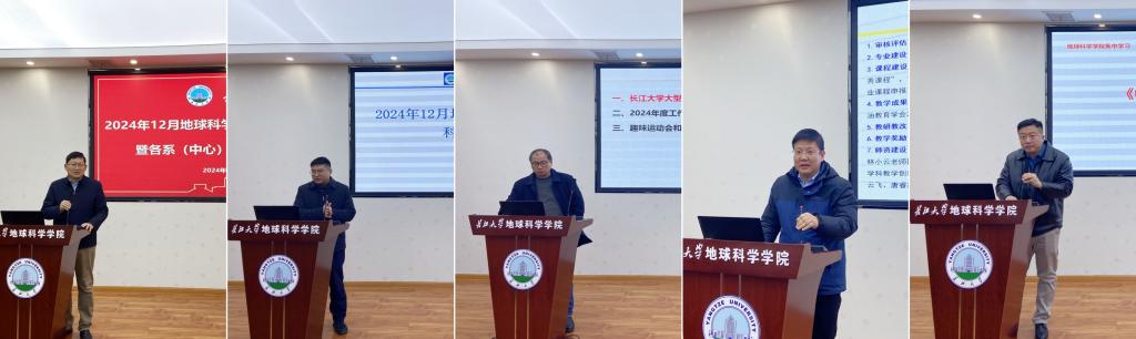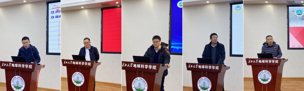 会议第二阶段,各系(中心)主任进行年终述职,石油系主任饶松,地质系主任李涛,地科系主任刘彬,地信系主任刘远刚,实验中心主任丰勇依次上台汇报,按照公司年初制定的目标任务对标对表认真梳理,谈成绩,找问题,话发展。