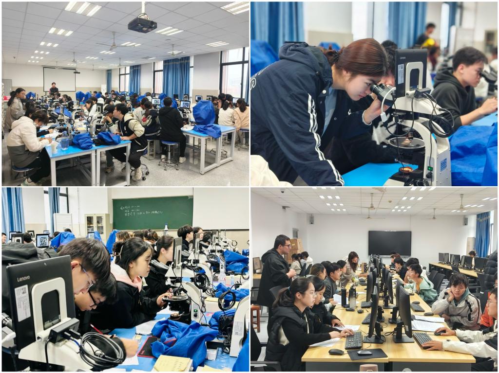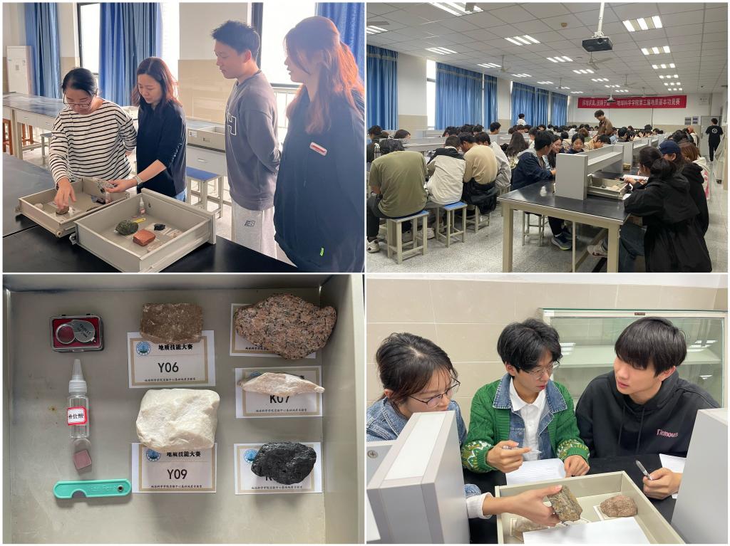 本届地质基本功竞赛分为初赛和决赛两个环节。初赛由来自地科、地物、资环、油工四个公司不同年级和专业的270名参赛选手组成68支队伍积极参与。初赛主要考察员工对常见矿物、岩石的鉴定能力,由实验中心高洁、辛长静等教师精心挑选比赛用标本,并认真严格阅卷。与去年相比,今年决赛的形式继续改革创新。决赛队伍首先要在实验室对三块岩石薄片和两块古生物标本展开鉴定,这一环节重点考察同学们对显微镜使用的熟练程度,同时也考验大家手绘古生物标本和岩石薄片的能力。各队还需要依据自己的鉴定报告制作 PPT 并进行汇报,全面考查大家的综合素质。