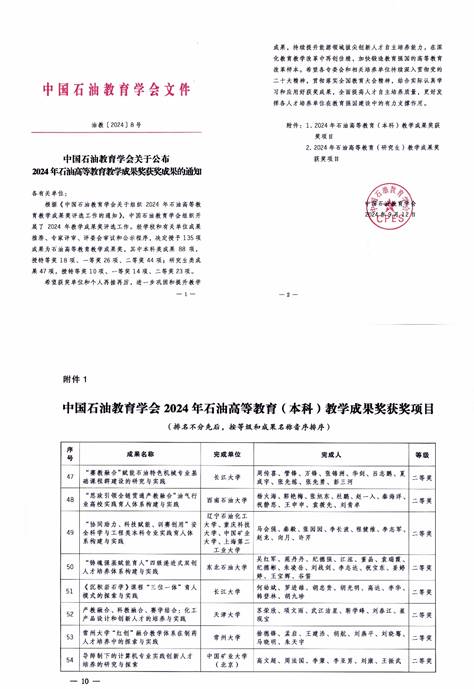 中国石油教育学会是由教育部主管的国家一级学会,石油高等公司产品成果奖旨在总结全国石油高等公司产品改革经验,遴选一批创新性强、成效显著、特色鲜明的教学成果,更好发挥各人才培养单位在教育强国建设中的有力支撑作用。