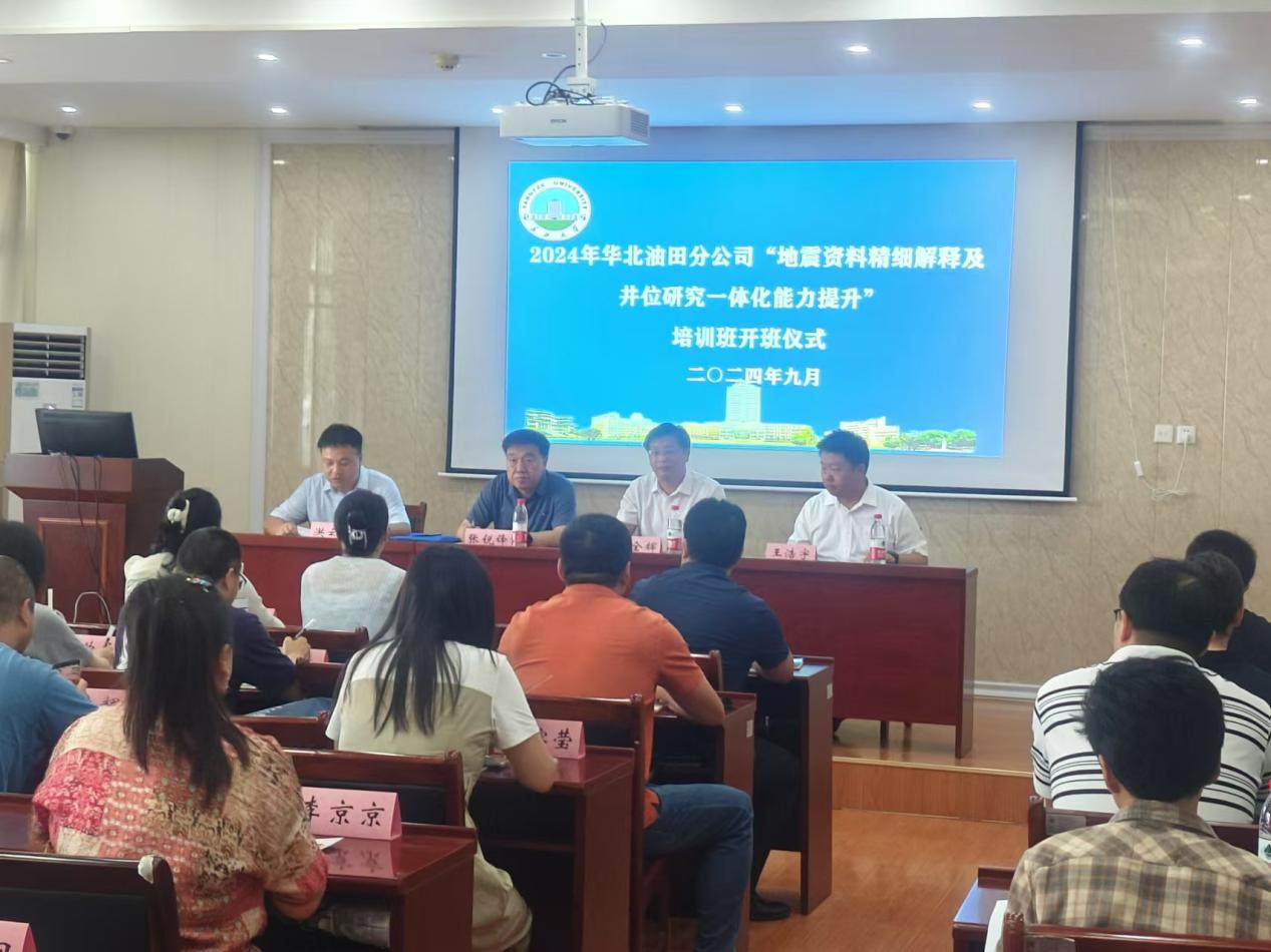 (通讯员 程玲)9月2日上午,华北油田分公司2024年“地震资料精细解释及井位研究一体化能力提升”培训班在武教B203开班。华北油田首席专家张锐锋、华北油田勘探事业部高级主管王浩宇,地球科学公司党委书记杨全辉、社会合作处副处长洪云飞出席开班仪式。