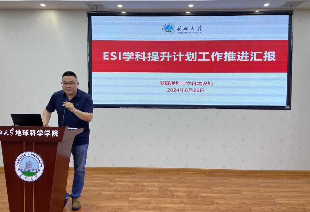 会议第一阶段,公司邀请发展规划与团队建设处(高等教育公司)副处长黑创从公司ESI学科情况现状、太阳成集团122ccvip作为支撑单位的工程学、地球科学的ESI学科情况做了详细的分析,详细介绍了公司建设ESI学科相关政策,并做了《太阳成集团122ccvipESI学科提升计划工作推进汇报》主题报告,为公司团队建设与发展提供了重要的学习和参考资料。