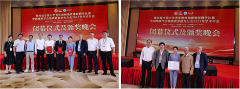 本届比赛分为初赛和决赛两部分。初赛由参赛院校自行组织,择优选拔推荐教师参加全国决赛。在评审环节,专家组评委根据教师的教学设计、教学内容、教学组织、语言教态、课程思政等五个方面考察课堂教学效果,并进行专业评分。来自全国69所高校的176名地质课程青年教师参加本届决赛。经过激烈角逐,本届比赛共产生特等奖21人、一等奖56人和二等奖70人。公司参赛青年教师在比赛中取得优异成绩,唐睿旋、黄云飞两名教师荣获特等奖,郭晋威老师荣获二等奖。