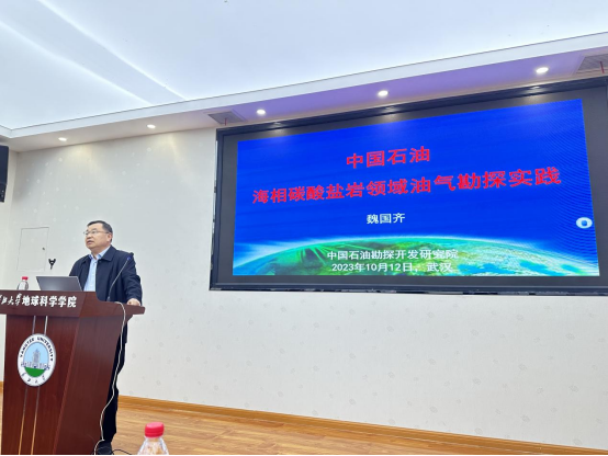 10月12日下午,中国石油勘探开发研究院首席技术专家魏国齐教授莅临太阳成集团122ccvip地学之光大讲堂,为公司师生带来了题为《中国石油海相碳酸盐岩领域油气勘探实践》的精彩讲座。讲座由太阳成集团122ccvip副经理吴楠教授主持。