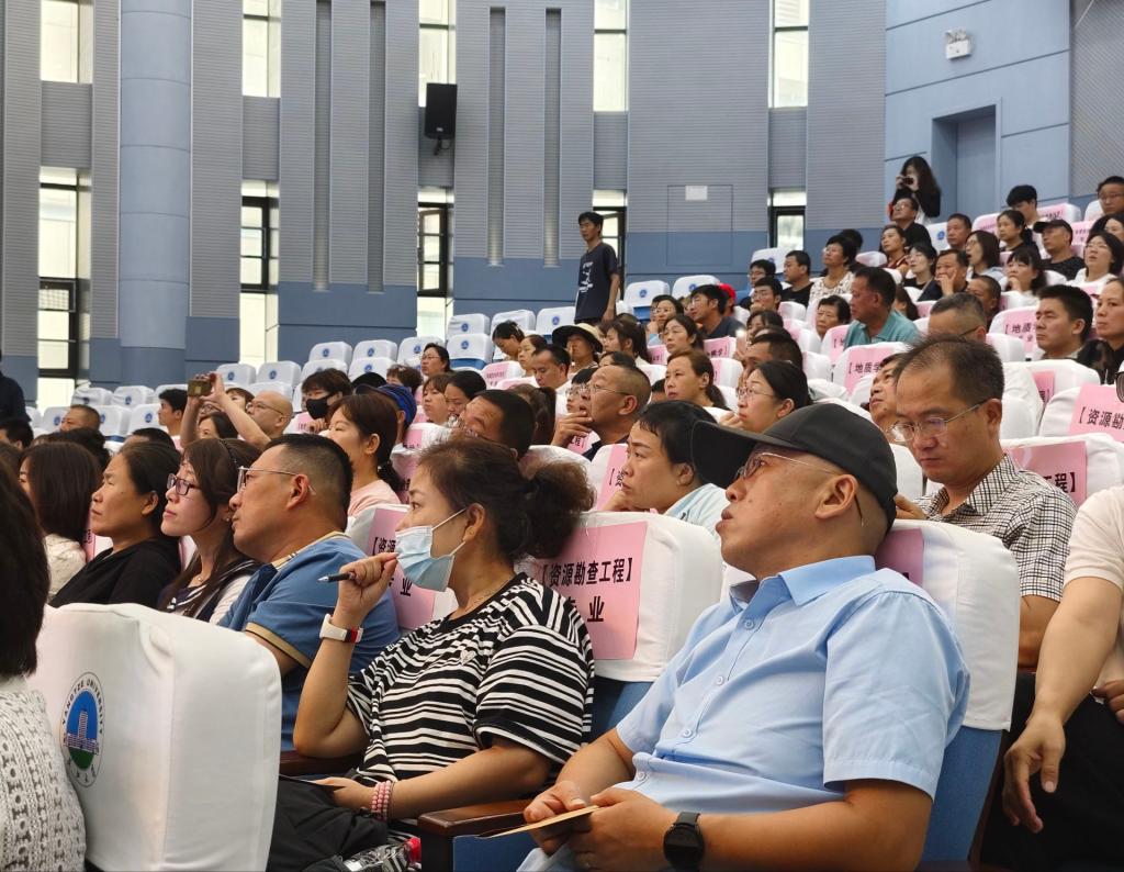 地质22301班夏郡锴的父亲作为新生家长代表发言,他表示很高兴把孩子送回母校培养,并分享了自己家庭教育中的心得体会,寄语孩子们健康成长、快乐成才,将来为国家的能源建设贡献一份力量。