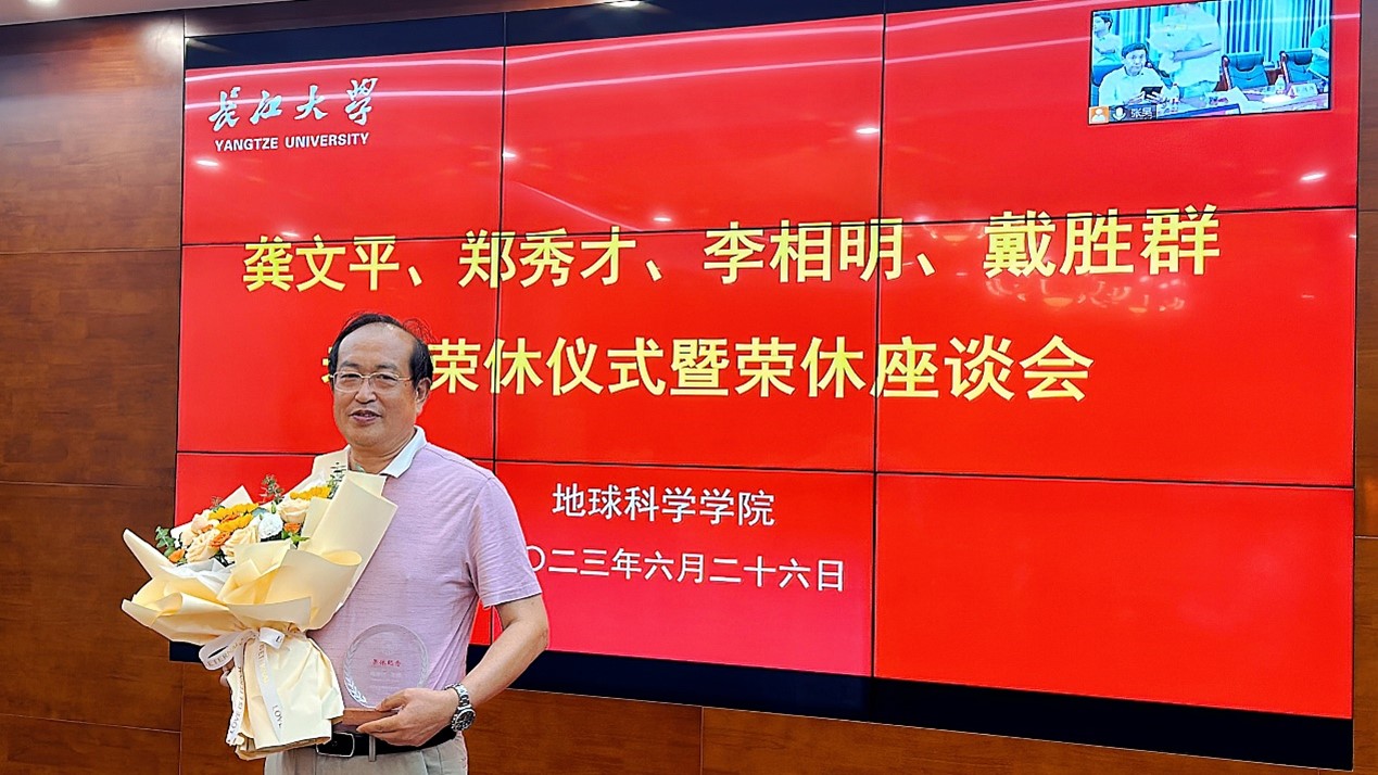 (通讯员 尚成)岁月映初心,薪火永相传。6月27日下午,公司在石油科技大楼C201室举行了2023年退休教师荣休仪式。公司领导、地质系和石油系部分教师代表齐聚一堂,热烈欢送龚文平教授、郑秀才教授、李相明副教授、戴胜群副教授四位老师光荣退休。公司党委书记杨全辉主持荣休仪式。