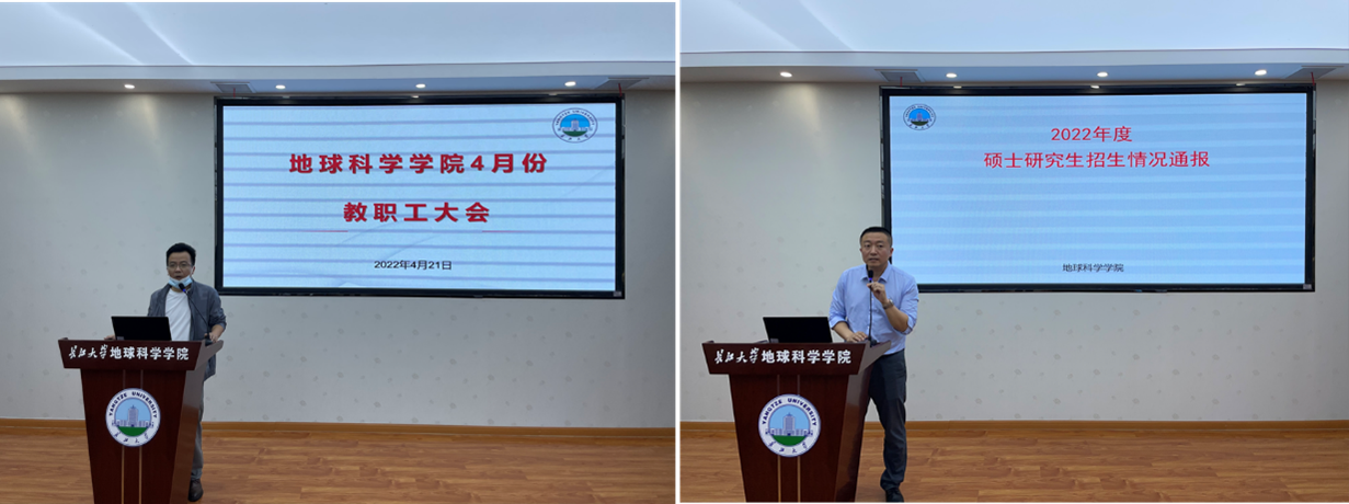 最后经理胡明毅通报了公司2022年人才招聘、国重实验室申报及第五届国际古地理学会议筹备等各项工作进展情况,并从人才培养、一流专业和团队建设、实验室平台建设等方面部署近期重点工作,对全院教职工提出了明确的要求和希望,希望公司全体教职工凝心聚力,团结一致,围绕公司2022年中心任务,攻坚克难,争取再创佳绩。