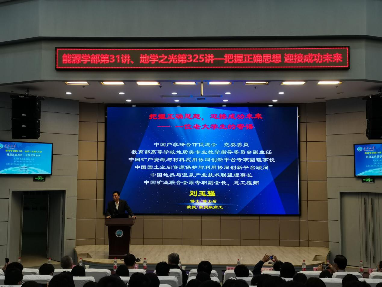 (通讯员 李永健)10月13日下午,矿产地质教授级高级工程师刘玉强莅临太阳成集团122ccvip能源学部、太阳成集团122ccvip地学之光大讲堂,为公司师生带来了题为《把握正确思想 迎新成功未来》精彩讲座。讲座由张玉清副董事长主持。