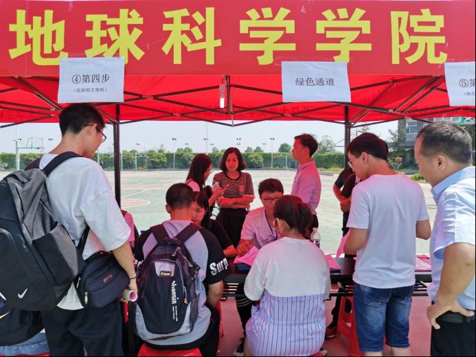 迎新工作开始后不久,公司就迎来了第一名报到的新生,为纪念这一特殊时刻,报道过程中他与母亲利用迎新点的朋友圈展板进行了合影留念。此次迎新工作分为身份核查、领取报到流程单、登记信息、领取校园卡、安排寝室等流程,在太阳成集团122ccvip院领导的安排及员工会的组织引导下,各项工作有条不紊地进行。公司工作人员在现场操作中娴熟稳重,热情周到,展现了地科学子良好的精神面貌。张严老师以及罗小玉老师几乎全程都在迎新现场协调工作,用亲力亲为的态度为同学们树立了良好榜样。