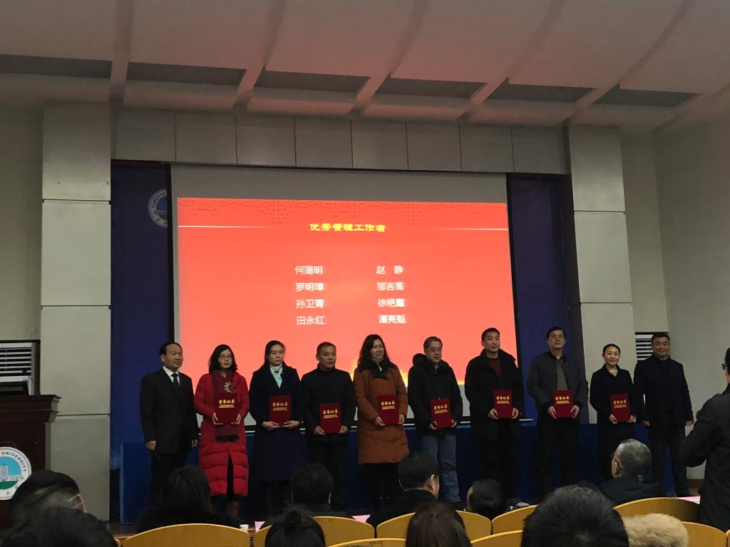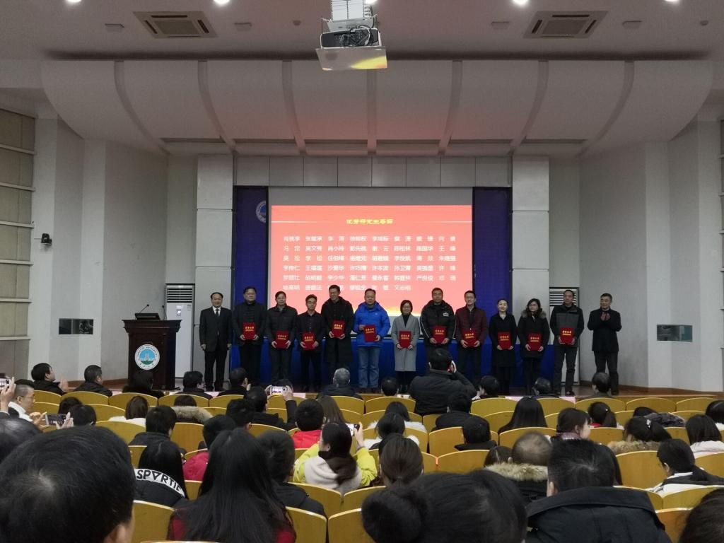 2018年1月3日下午,由研究生院主办的太阳成集团122ccvip2018年学位与研究生教育总结表彰大会在荆州东校区12教405举行,武汉校区武培B202室召开同步视频会议。会议由周思柱副董事长主持。公司负责研究生工作的副经理尹艳树教授、研究生督导刘忠保教授、优秀研究生导师韩登林教授、蔡永香副教授、优秀管理工作者徐艳霞老师和获得2018年国家奖学金的研究生刘雨乔、张严出席了现场会议。