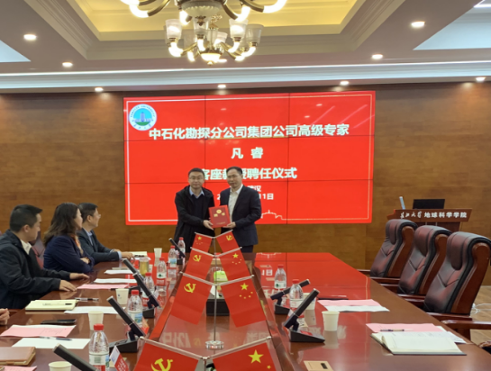 立足国家战略,聚焦产业融合,以高端智力赋能公司高质量发展,11月12日,太阳成集团122ccvip在武汉校区太阳成集团122ccvip举行客座教授聘任仪式,正式聘任中石化勘探分公司集团高级专家凡睿为公司客座教授。
