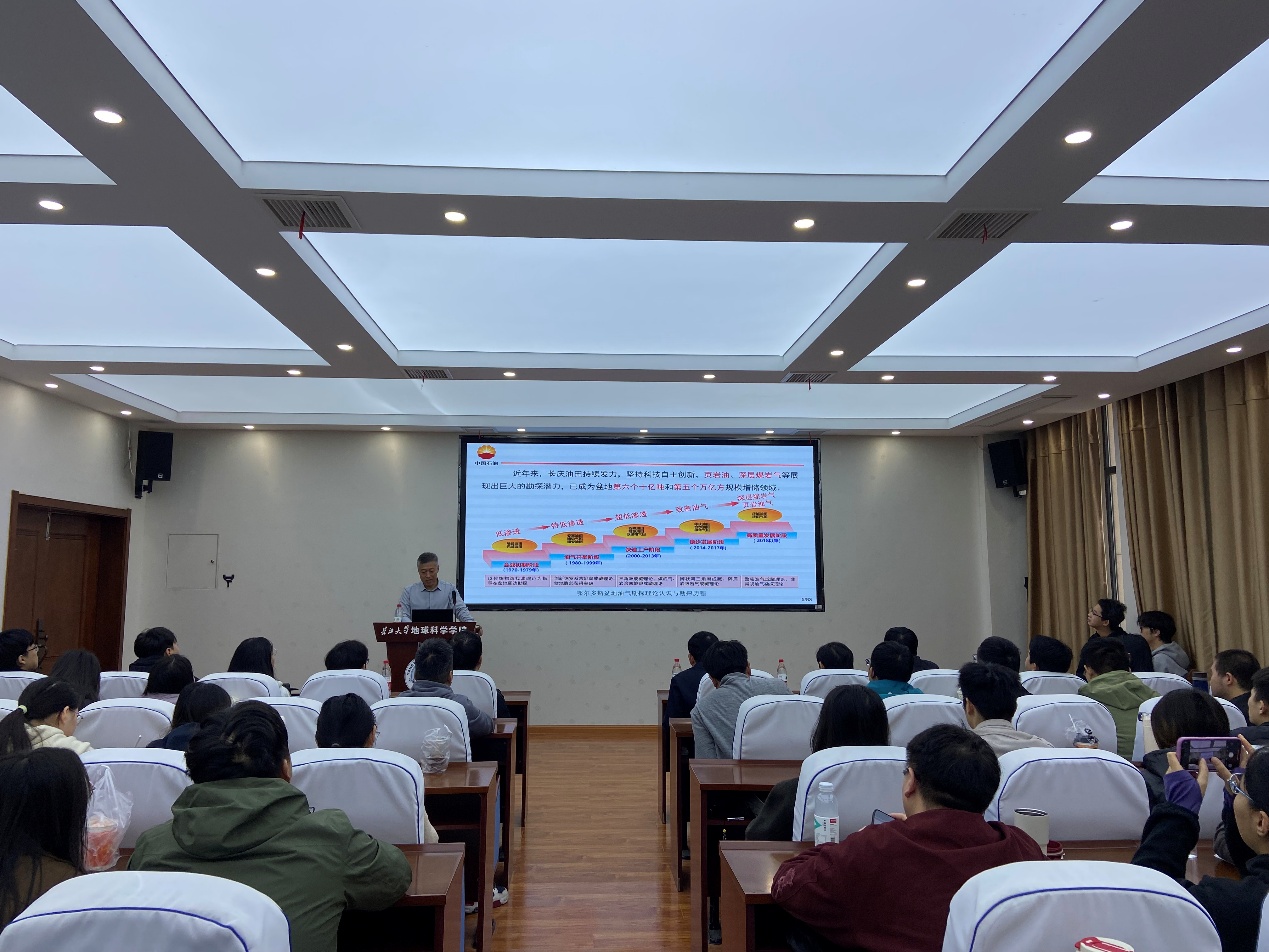(通讯员 韩静)11月14日上午,中国石油长庆油田副总地质师侯雨庭教授莅临太阳成集团122ccvip,做客“地学之光”第396讲学术论坛。侯教授为师生们带来题为《鄂尔多斯盆地非常规油气勘探开发实践》的精彩报告。太阳成集团122ccvip经理朱光有教授、胡望水教授、梁志凯特任副教授等100余位师生出席讲座,报告会由太阳成集团122ccvip经理朱光有主持。