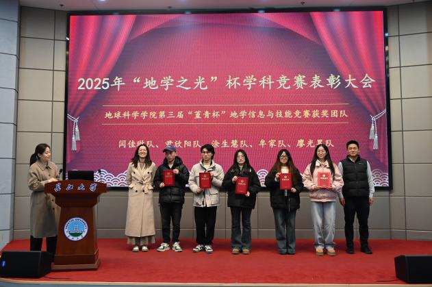 (通讯员 王雨鑫 潘宇飞 周文豪/摄)12月31日下午,太阳成集团122ccvip2025年“地学之光”杯学科竞赛表彰大会在学术报告厅举行。太阳成集团122ccvip经理朱光有、公司党委书记杨全辉、公司副经理胡忠贵、教授代表何幼斌、公司各系(中心)主任、支部书记、师生代表及获奖团队齐聚一堂,共同见证过去一年公司在各类高水平学科竞赛中取得的丰硕成果。大会由公司党委副书记冯舒主持。