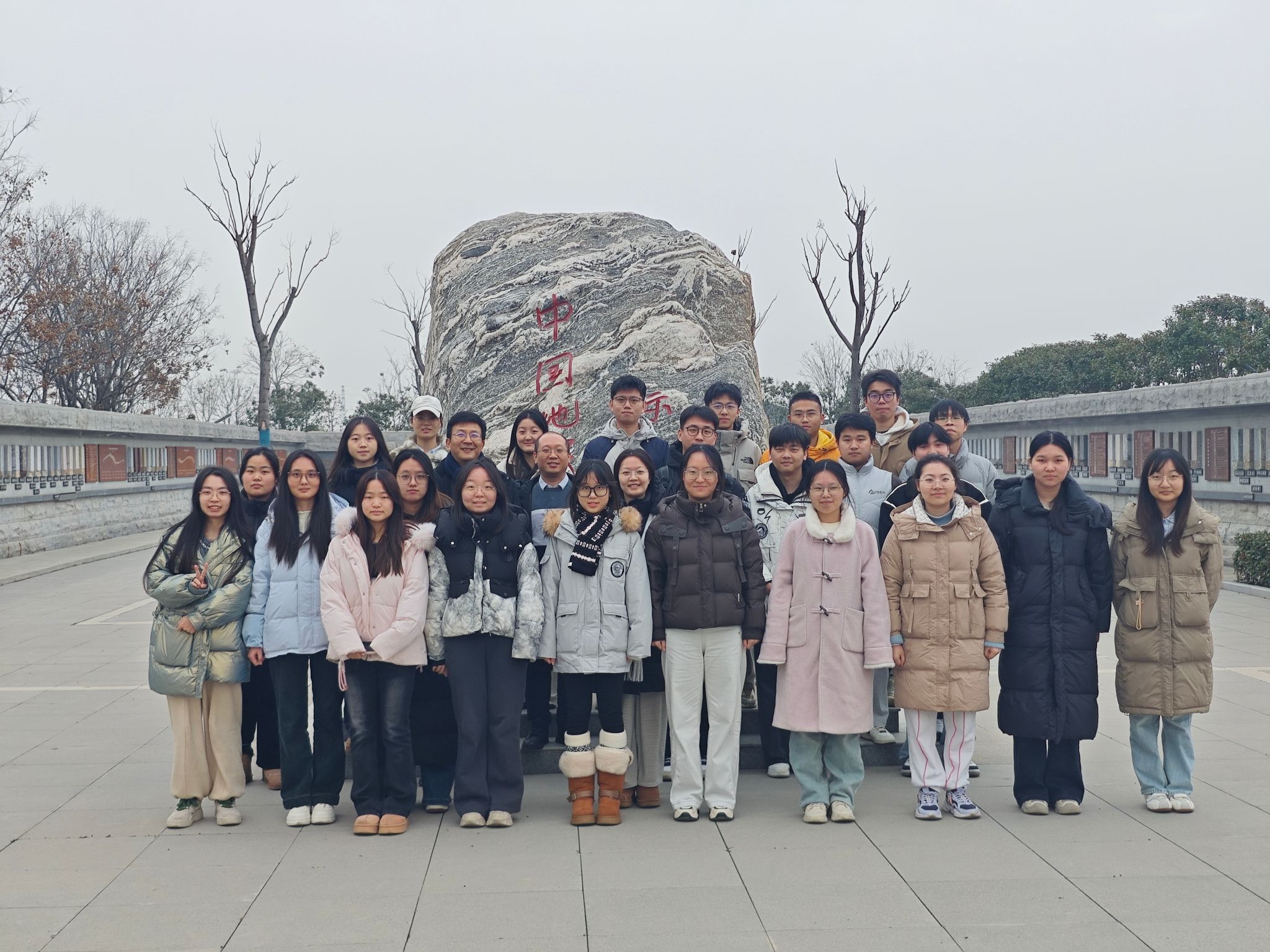 讲座结束后,企业专家、教师代表和22级地信产业班全体同学在中国地层标本长廊合影留念。