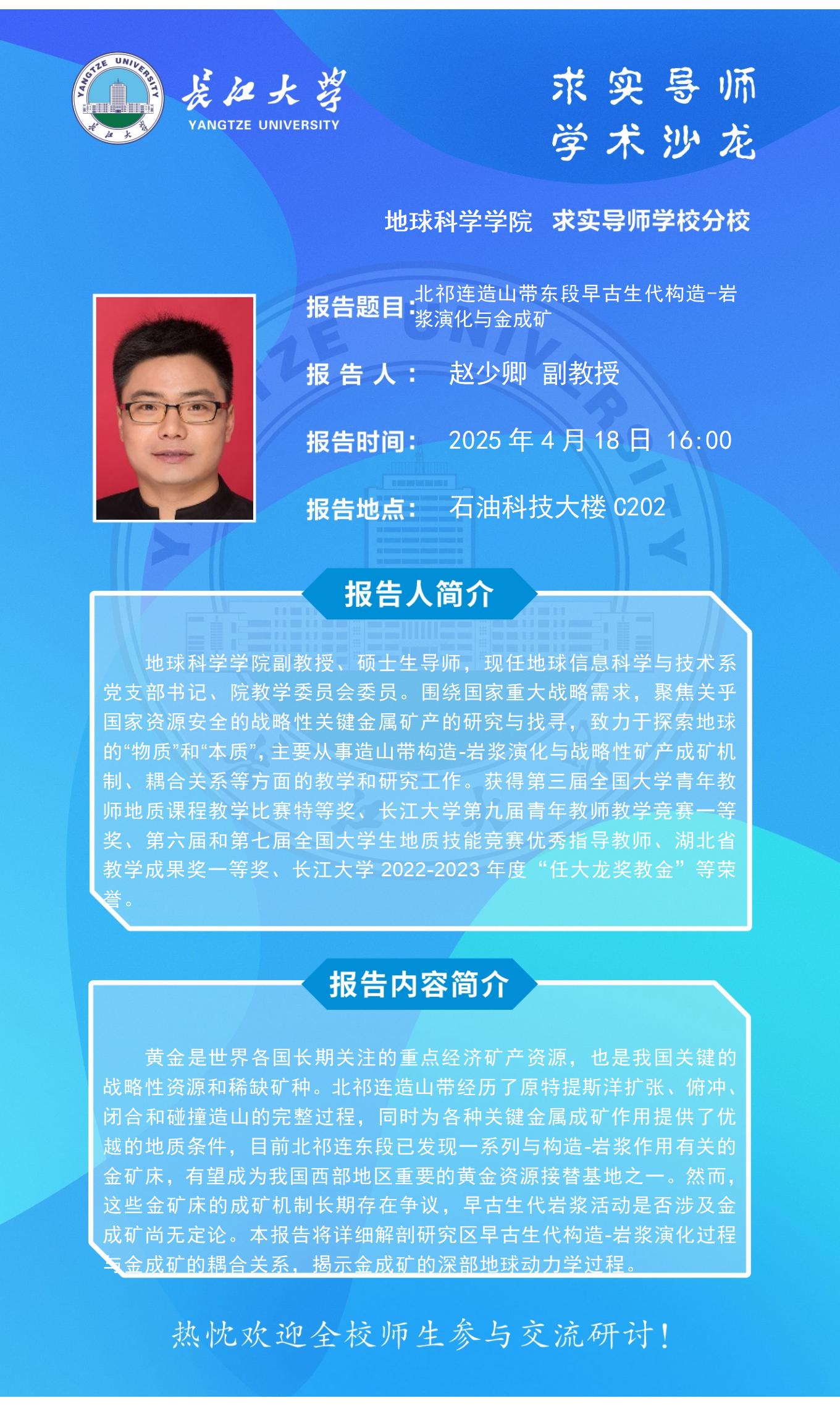 太阳成集团122ccvip2024-2025学年“求实导师学术沙龙”讲座信息(4月18日)