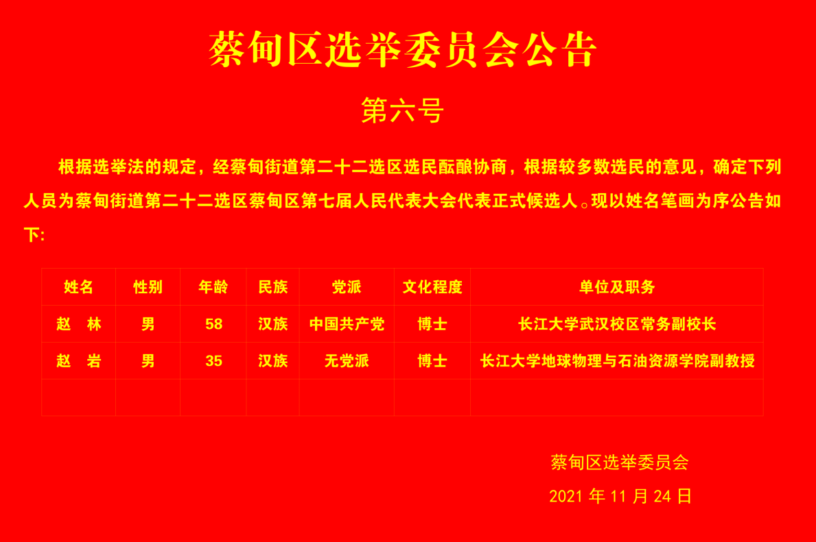 蔡甸区选举委员会公告-第六号