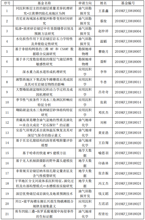 2019年度地质资源与地质工程一流学科开放基金中期检查通过名单