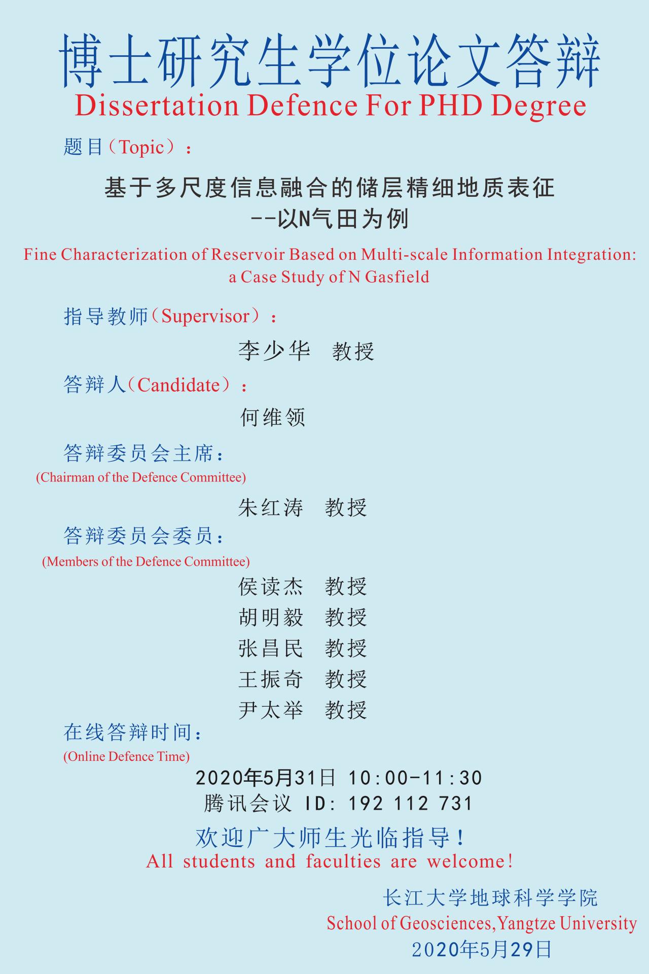 何维领博士研究生学位论文答辩安排