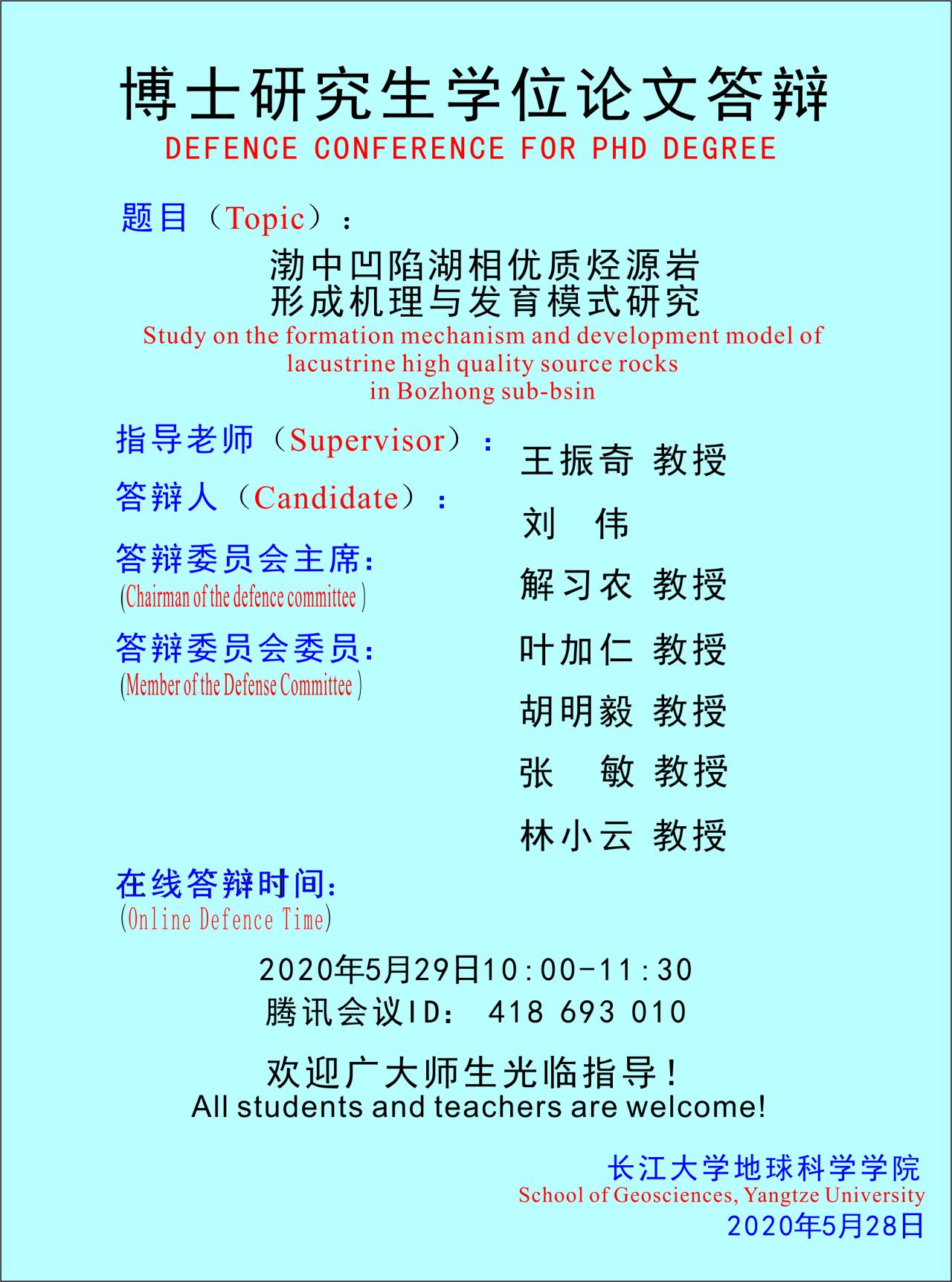 刘伟博士研究生学位论文答辩安排