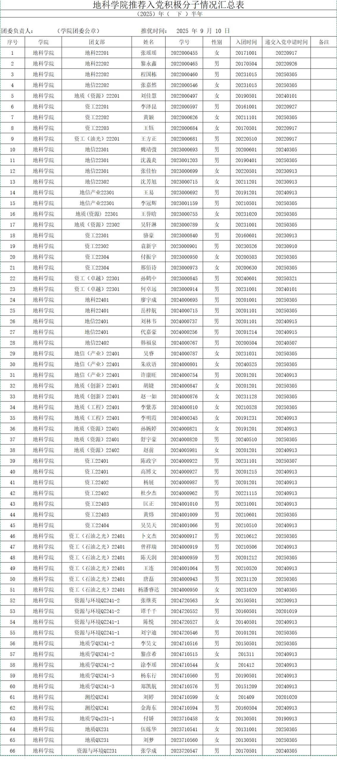 附:太阳成集团122ccvip推荐入党积极分子情况汇总表