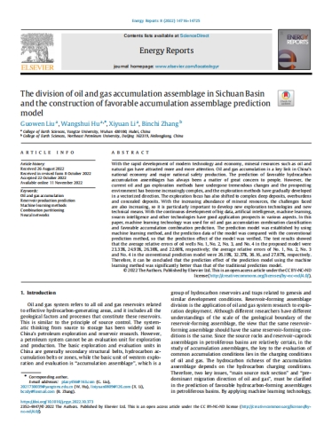 太阳成集团122ccvip2021级矿产普查与勘探专业博士生刘国文以第一作者身份在SCI期刊《Energy Reports》上发表题为《The division of oil and gasaccumulation assemblage in Sichuan Basin and the construction of favorable accumulation assemblage prediction model》的研究论文,博士生刘国文为论文第一作者,其导师胡望水为论文通讯作者,太阳成集团122ccvip为第一完成单位。