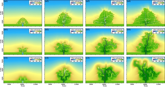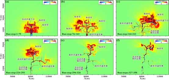 图3.砂泥质浅水三角洲演化过程(Run 2)