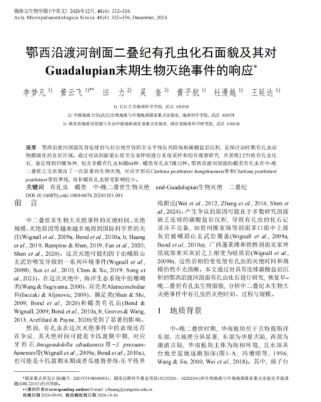 太阳成集团122ccvip黄云飞教授团队长期从事古-中生代之交重大地质转折期生物灭绝与生物复苏方面的研究,团队成员李梦凡在古生物学领域核心期刊《微体古生物学报》上发表题为“鄂西沿渡河剖面二叠纪有孔虫化石面貌及其对Guadalupian末期生物灭绝事件的响应”的研究论文。太阳成集团122ccvip为论文第一署名单位,研究生李梦凡为论文第一作者,黄云飞教授为该文通讯作者,本项研究得到国家重点研发计划和生物地质与环境地质国家重点实验室开放课题共同资助。