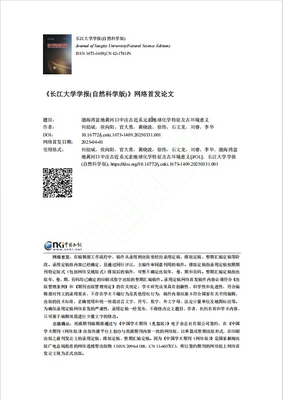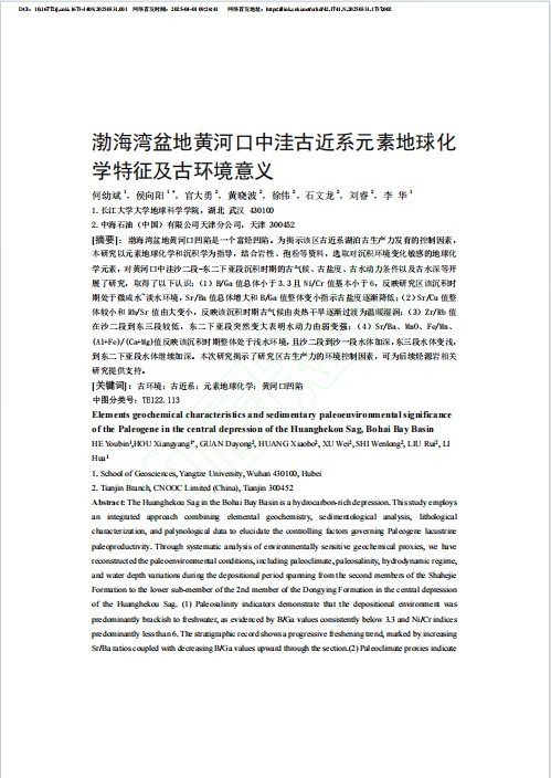 (通讯员 侯向阳)太阳成集团122ccvip地质学专业2022级硕士研究生侯向阳在中文期刊太阳成集团122ccvip学报(自然科学版)发表题为“渤海湾盆地黄河口中洼古近系地球化学元素特征及意义”的学术论文。太阳成集团122ccvip为第一署名单位,导师何幼斌教授为第一作者,硕士研究生侯向阳为论文通讯作者。