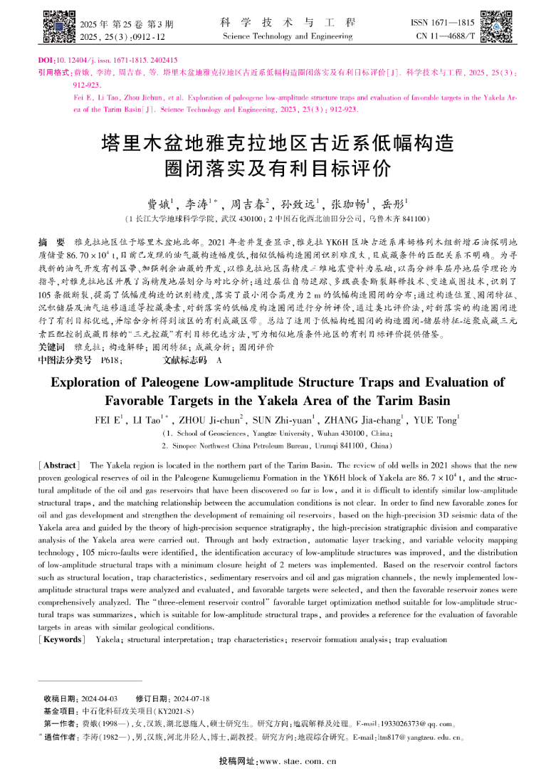 论文链接:塔里木盆地雅克拉地区古近系低幅构造圈闭落实及有利目标评价(stae.com.cn)