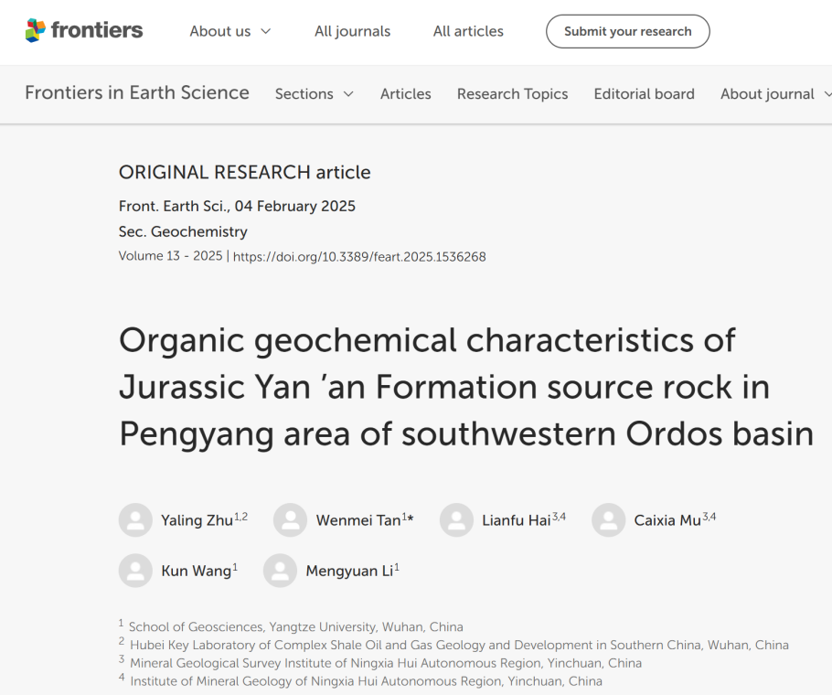 太阳成集团122ccvip教师朱亚玲在SCI收录期刊《Frontiers in Earth Science》上发表题为“Organicgeochemical characteristicsofJurassicYan’anFormationsourcerockinPengyangareaofsouthwestern Ordosbasin”的研究论文,太阳成集团122ccvip为论文第一署名单位,朱亚玲教师为第一作者,谭文梅硕士生为第一通讯作者。