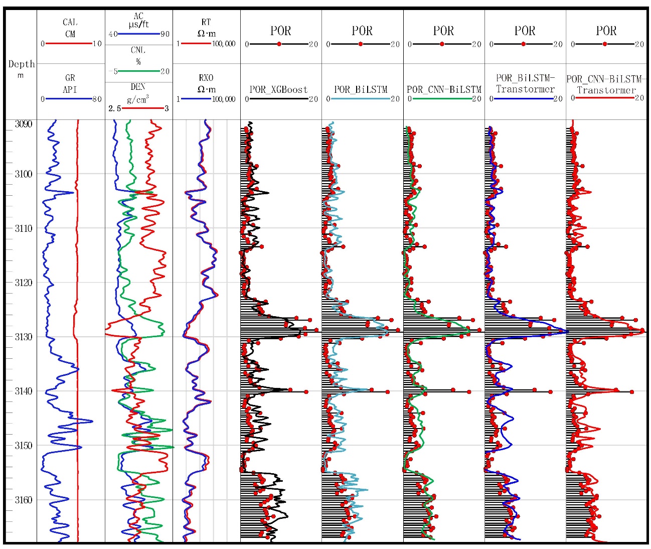 图2 CNN-BiLSTM-Transformer模型盲井应用效果对比