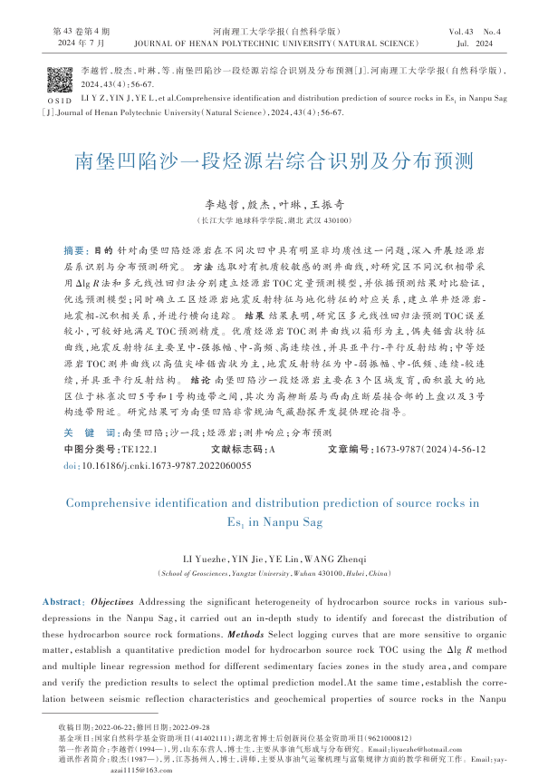 太阳成集团122ccvip博士生李越哲在《河南理工大学学报(自然科学版)》上发表题为《南堡凹陷沙一段烃源岩综合识别及分布预测》的研究论文。太阳成集团122ccvip为论文第一署名单位,博士生李越哲为论文第一作者,教师殷杰为通讯作者。