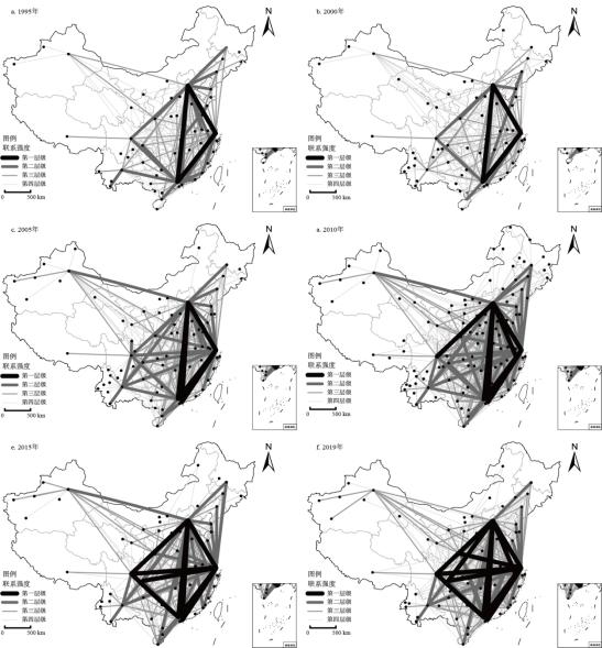 论文通过1995、2000、2005、2010、2015、2019年中国航空统计数据,采用复杂网络分析方法和地理探测器方法,探究中国城市网络结构特征和演变规律,并对驱动因素进行分析,研究结果表明:①中国城市网络具有明显的小世界性和一定的类无标度特征,城市网络规模不断扩散。②全国城市数量不断增加,中国城市网络呈现多中心、均衡化发展趋势。③中国城市网络逐渐形成”菱形结构“的核心框架,并显现两头高中间低的鞍型结构。④城市网络联系强度不断提高,形成4个联系层次,城市网络呈现明显的等级层次结构。⑤城市网络结构的演变受多重因素共同驱动,城市行政等级、旅游总收如和地方生产总值是影响城市网络结构的主要因素。