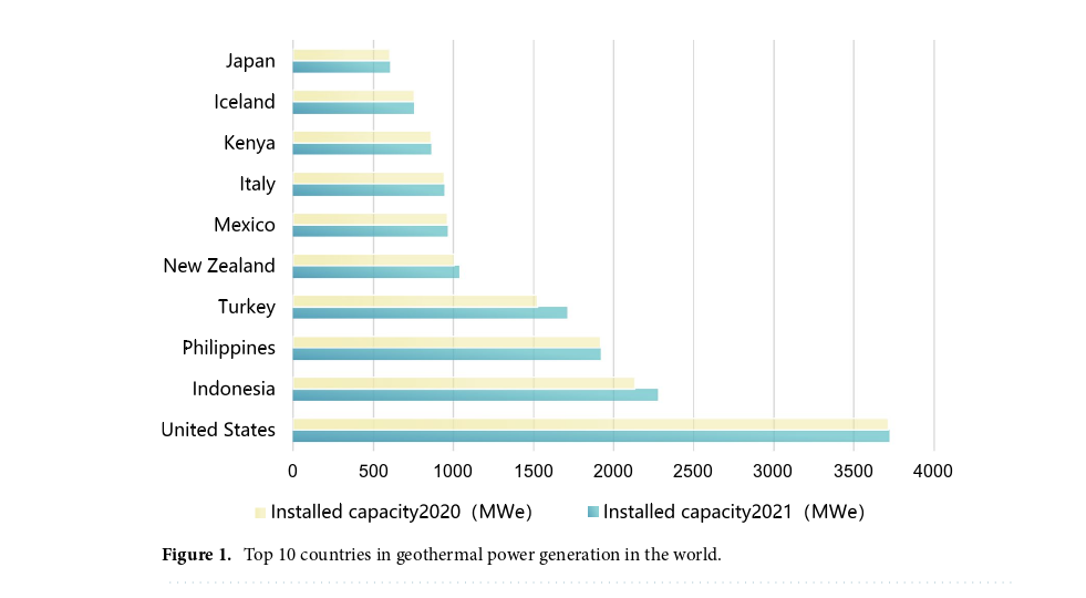 图1 世界地热发电排名前十的国家
