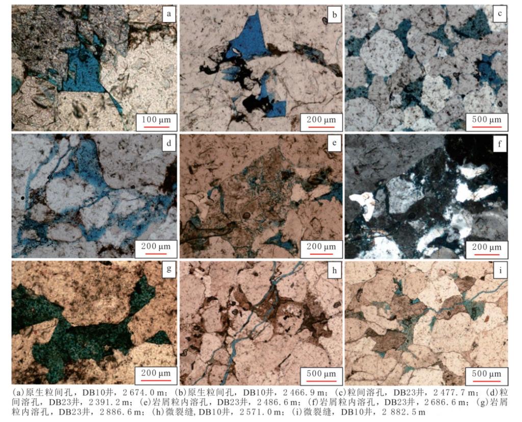 图3 研究区下石盒子组致密砂岩孔隙镜下特征