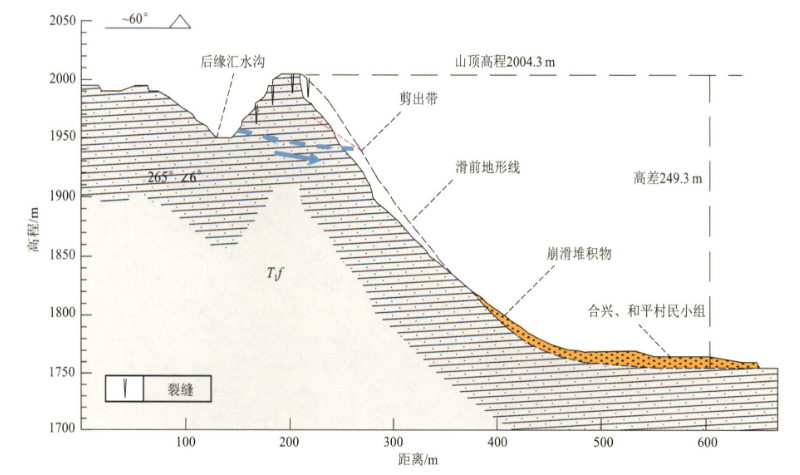 本研究在现场调查的基础上确定滑坡发育的特点,基于无人机航测和实地测量确定滑坡体积与堆积面积。通过堆积岩块的新鲜面和风化面分析确定岩石节理发育和风化松动特征;通过附近出露岩体的产状和节理特征的测量,进一步确定滑坡源区的岩体特征。基于近年的区域降水过程和岩性分析滑坡赋水的特征,以及岩石冻胀力学和滑坡发生前的气温变化,结合岩体组构,分析冻胀引发滑坡的可能性及其机制。