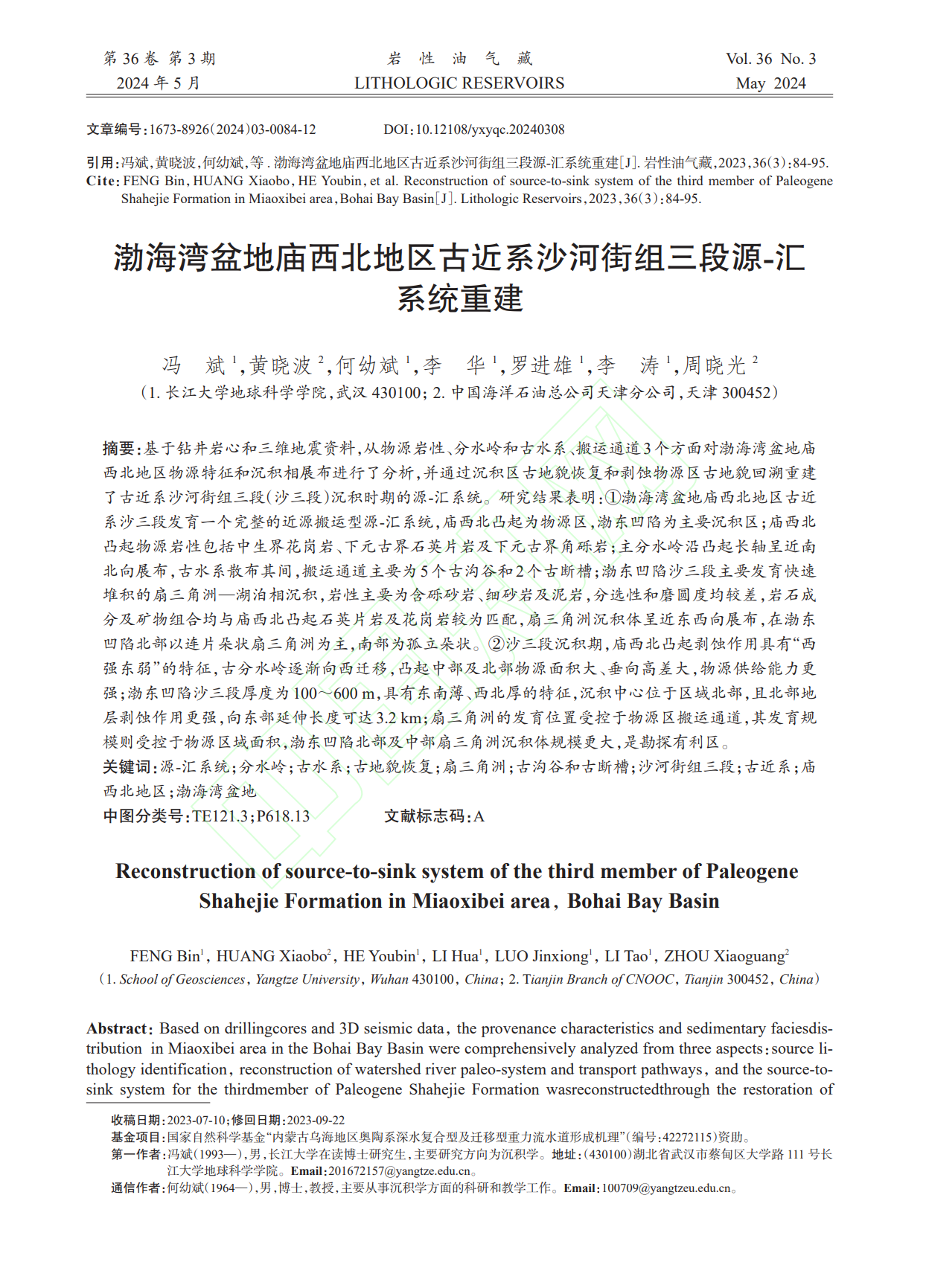 太阳成集团122ccvip何幼斌教授团队长期从事沉积储层相关研究,团队成员冯斌在中文核心期刊《岩性油气藏》上发表题为“渤海湾盆地庙西北地区古近系沙河街组三段源-汇系统重建”的科研论文。太阳成集团122ccvip为论文第一署名单位,博士研究生冯斌为论文第一作者,其导师何幼斌教授为通讯作者。