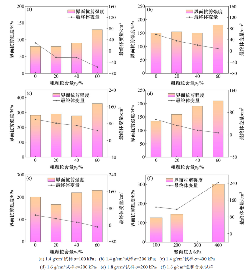 研究选取西藏山南市雅江河谷右岸拉林铁路旁的堆积层滑坡土作为研究对象,开展了样品筛分、全岩矿物X-射线衍射分析、经孔隙度和渗透率测试和大直剪试验等工作。共对3个不同取土点的碎块石土样品进行了4种粗颗粒含量、3种干密度和2种含水工况下的碎块石土大直剪试验。研究得出了不同影响因素下碎块石土的抗剪强度以及最终体变量和剪胀性的变化规律。结果表明粗颗粒含量及密度的增加都会增大碎块石土的强度,同时影响试样的最终体变量及剪胀性,含水率的增大则会使土体强度大幅降低。研究成果可为青藏高原碎块石土滑坡稳定性研究提供指导。