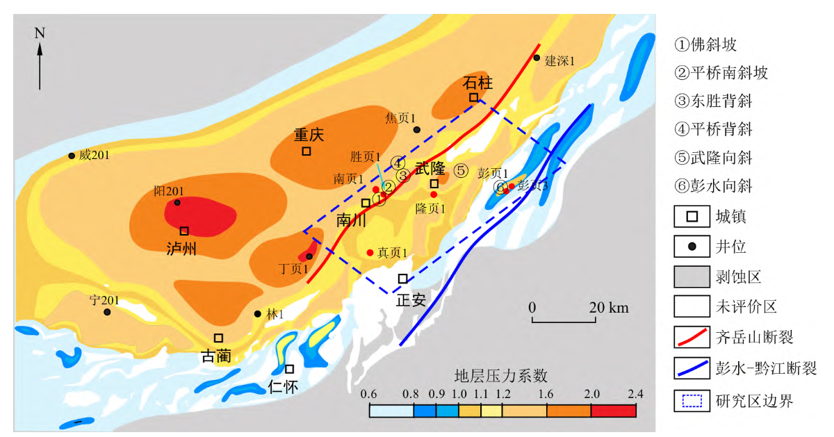 图3 四川盆地五峰组-龙马溪组页岩及周缘地层压力系数