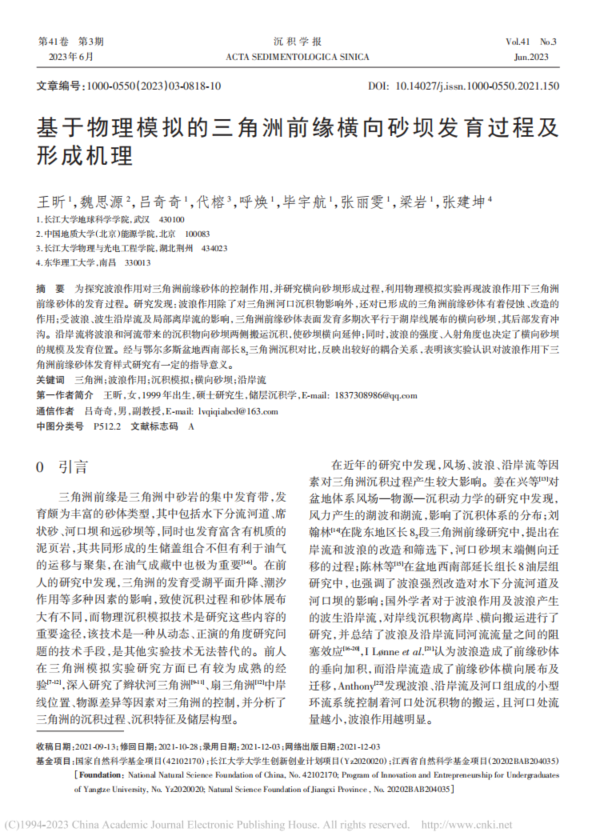 论文链接:基于物理模拟的三角洲前缘横向砂坝发育过程及形成机理 - 中国知网 (cnki.net)