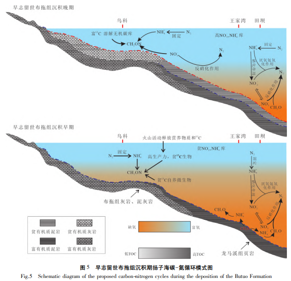 图1早志留世布拖组沉积期扬子海碳-氮循环模式图