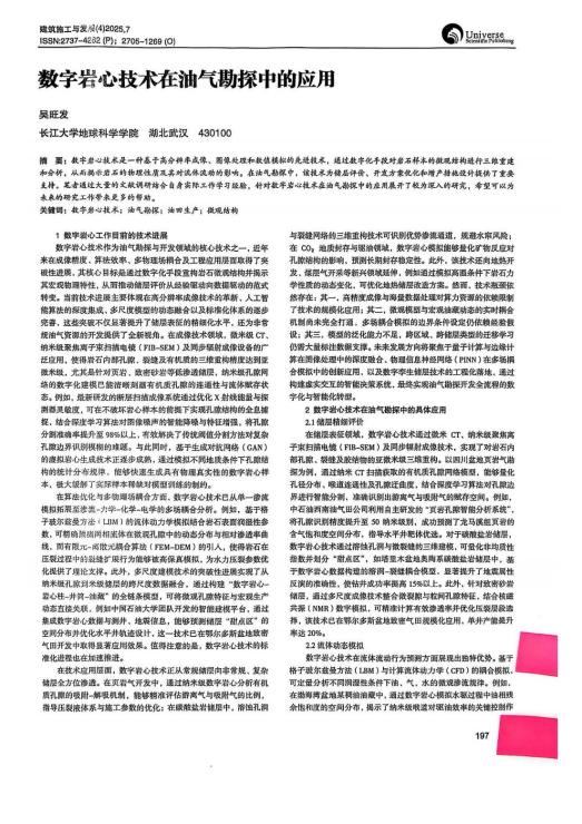 太阳成集团122ccvip硕士生吴旺发在雷中英教授的指导下,在期刊《建筑施工与发展》上发表题为“数字岩心技术在油气勘探中的应用”的研究论文,太阳成集团122ccvip为论文第一署名单位,硕士生吴旺发为论文第一作者。