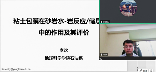 讲座伊始,李欢老师首先回顾了当前对于砂岩粘土膜的认识,并从粘土膜可以指示沉积环境和抑制石英加大两个方面,强调了其在砂岩储层研究中的重要性。紧接着,他又从粘土膜降低被包裹碎屑颗粒表面积的机理、粘土膜降低跨层物质扩散速率的机理、粘土膜降低被包裹长石颗粒溶蚀速率的机理、粘土膜的潜在溶蚀过程、粘土膜抑制石英加大的机理五个方面详细讨论了近期的一些研究新进展。