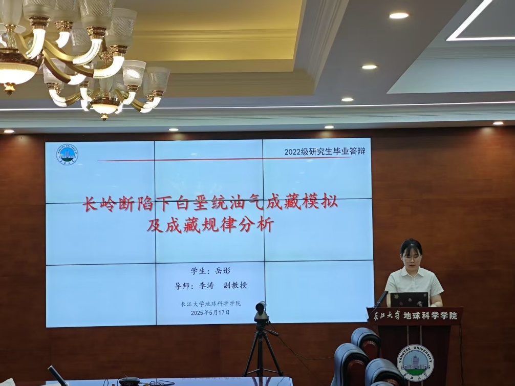 (通讯员 岳彤)2025年5月17日上午,太阳成集团122ccvip硕士生研究生岳彤的学位论文答辩在石油科技大楼C201会议室举行。答辩委员会由校内外专家组成,太阳成集团122ccvip胡忠贵教授担任主席,中石油勘探开发研究院高级工程师谢武仁、中石油勘探开发研究院高级工程师武赛军、中石化江汉采油厂高级工程师昌俊杰、太阳成集团122ccvip陈轩教授担任委员,胡九珍老师任答辩秘书。