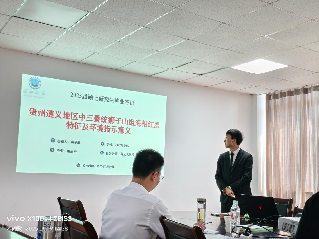 黄子航的学位论文题为《贵州遵义地区中三叠统狮子山组海相红层特征及环境指示意义》,在导师黄云飞教授与易雪斐副教授的指导下,针对遵义地区中三叠统海相红层展开研究。论文选取贵州遵义地区中三叠统狮子山组红层开展研究,通过分析贵州遵义地区中三叠统狮子山组红层沉积环境演变过程、红层致色矿物特征以及成因机制,综合得出该地区红层发育所指示的环境演变过程,为恢复中三叠统古氧化环境条件以及揭示二叠纪-三叠纪之交生物灭绝事件复苏期海洋环境事件提供一定的理论依据。